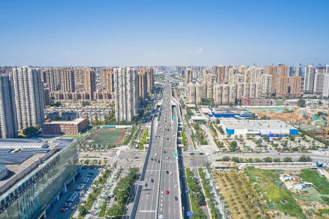 西安市會展中心外圍提升改善道路PPP項目廣安路快速化改造工程西起北二環(huán)辛家廟立交,東至東三環(huán)安邸立交,全長3.8公里,橋上設計雙向6車道,是十四運配套項目之一。